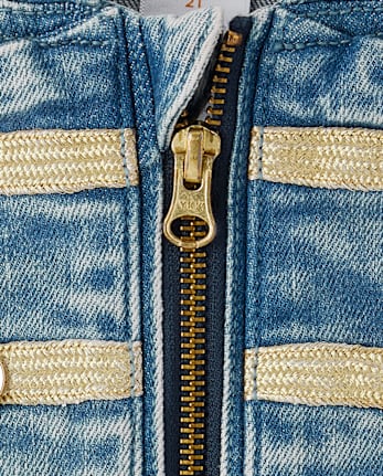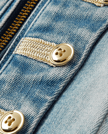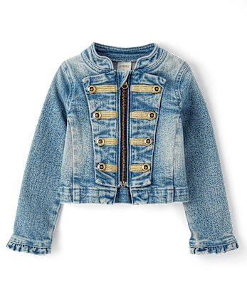 Girls Button Denim Band Jacket – blue