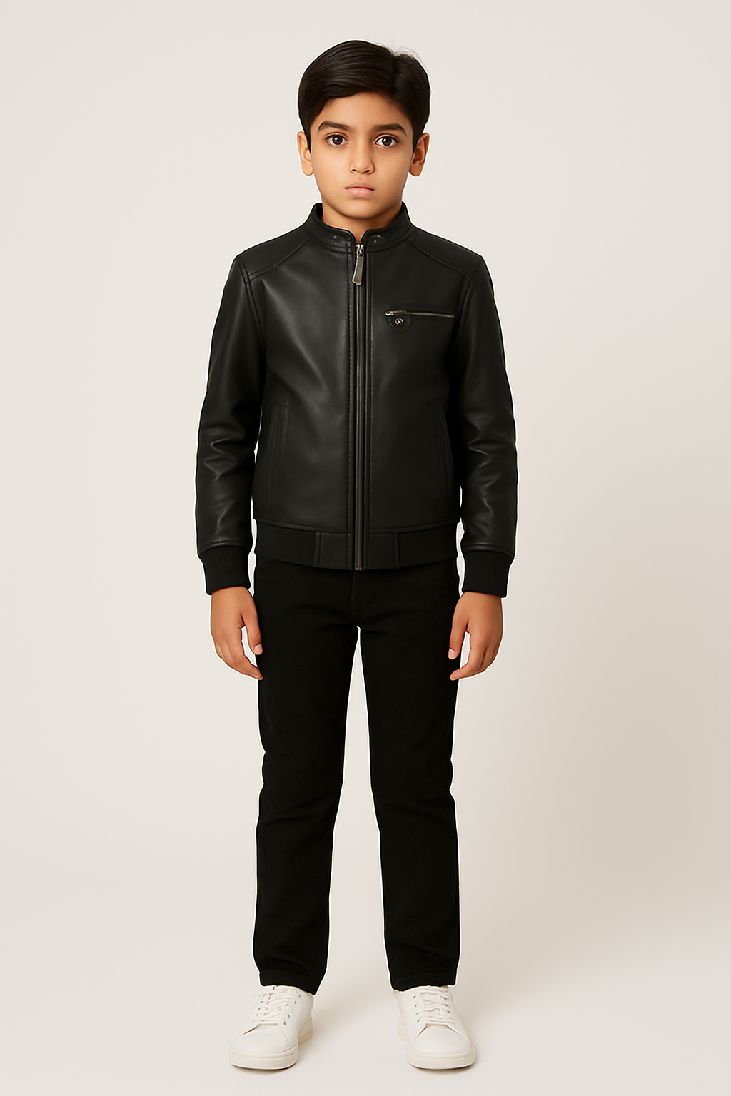 Give your child a timeless winter look with the Kids Black Leather Jacket – Classic Winter Style. Designed for durability, comfort, and a sleek appearance, this jacket is a versatile addition to any child’s winter wardrobe.