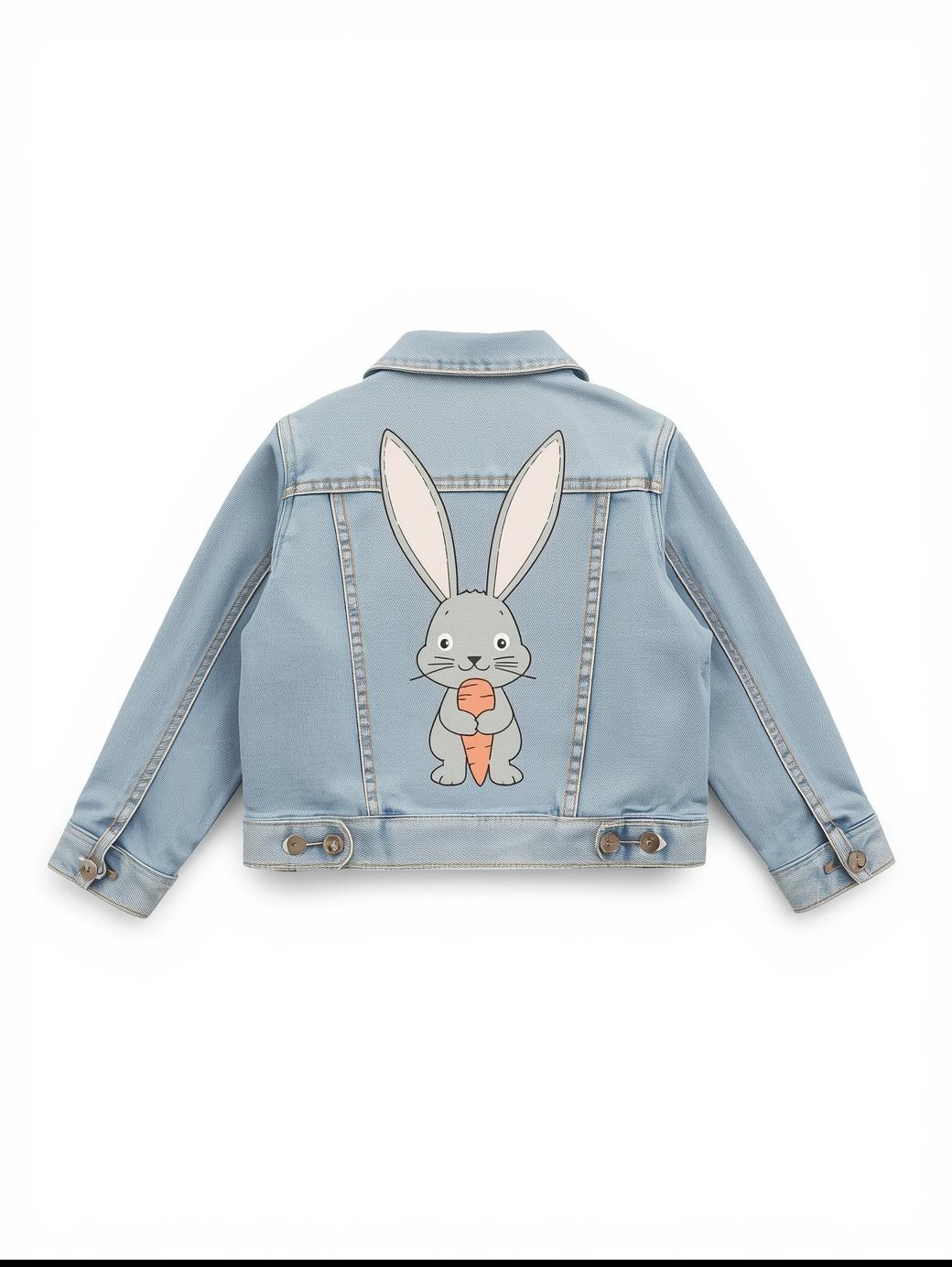 🧒 Kids Cartoon Bunny Denim Jacket – Perfect for Mild Weather & Mountain Adventures