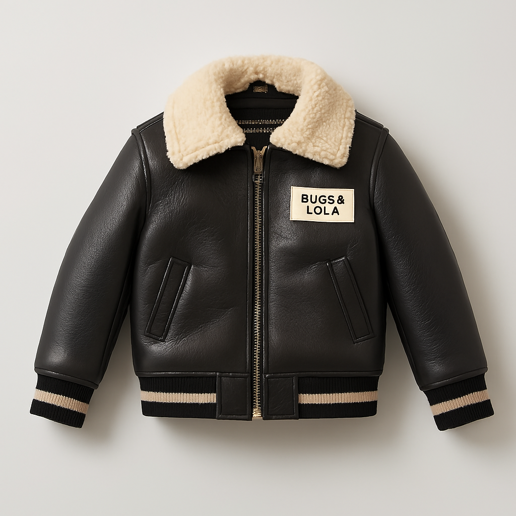 A playful chest patch featuring the BUGS & LOLA logo adds a signature touch, making it perfect for casual outings, school days, or festive occasions. Designed for durability and style, this jacket is a must-have for fashion-forward kids.