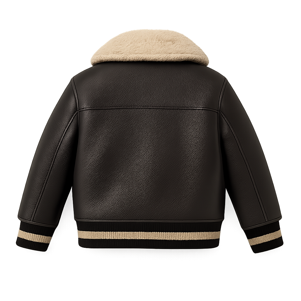 This kids leather jacket is made from synthetic leather (PU/PVC-based), which offers a stylish look and moderate insulation. While it’s not highly breathable, it provides excellent wind resistance and warmth in cooler climates.