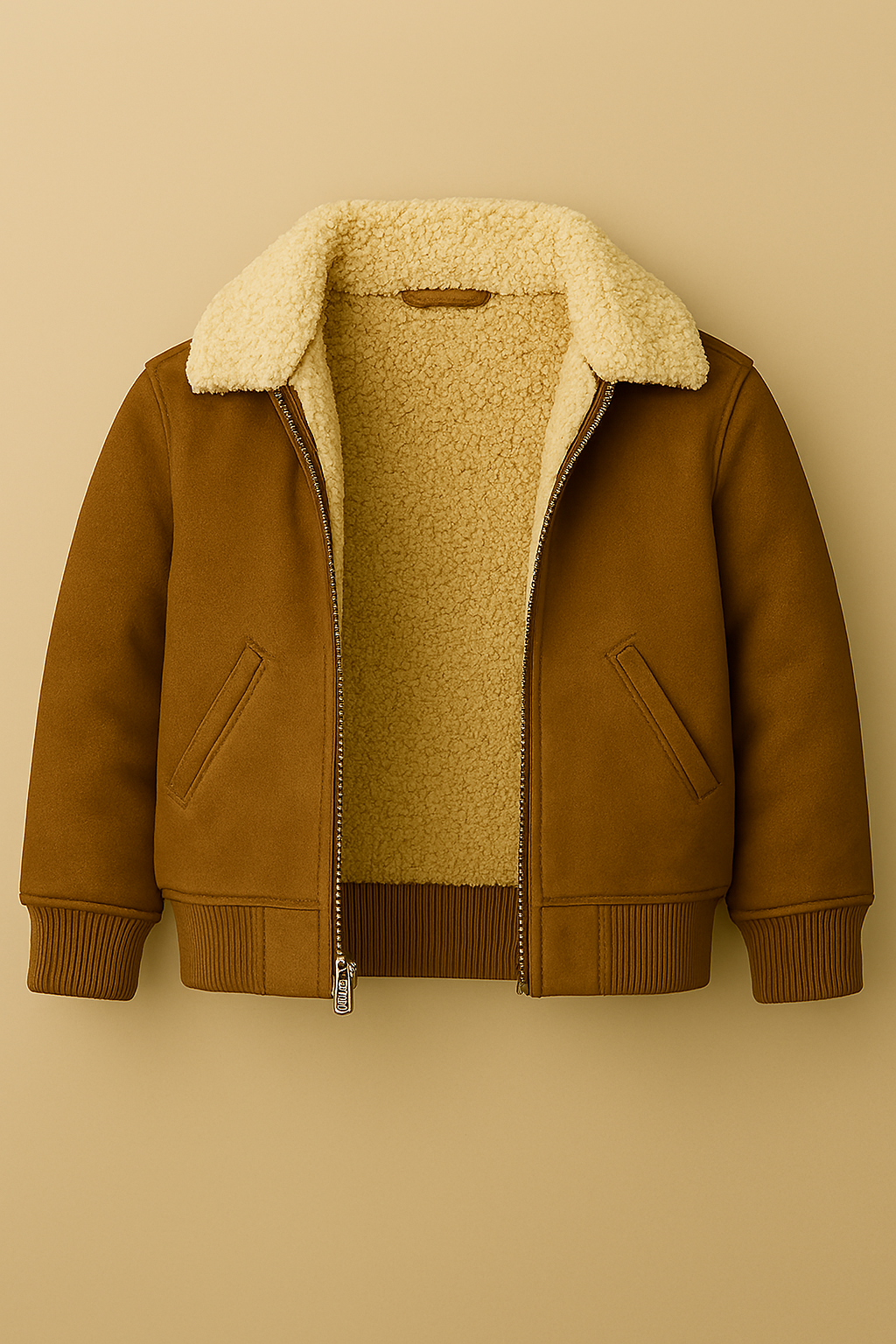 Give your child the warmth they deserve with this timeless suede leather bomber jacket, designed for Pakistan’s coldest regions. Crafted from premium suede leather and lined with thick sherpa fleece, it’s built to handle brisk winds and frosty mornings in style.