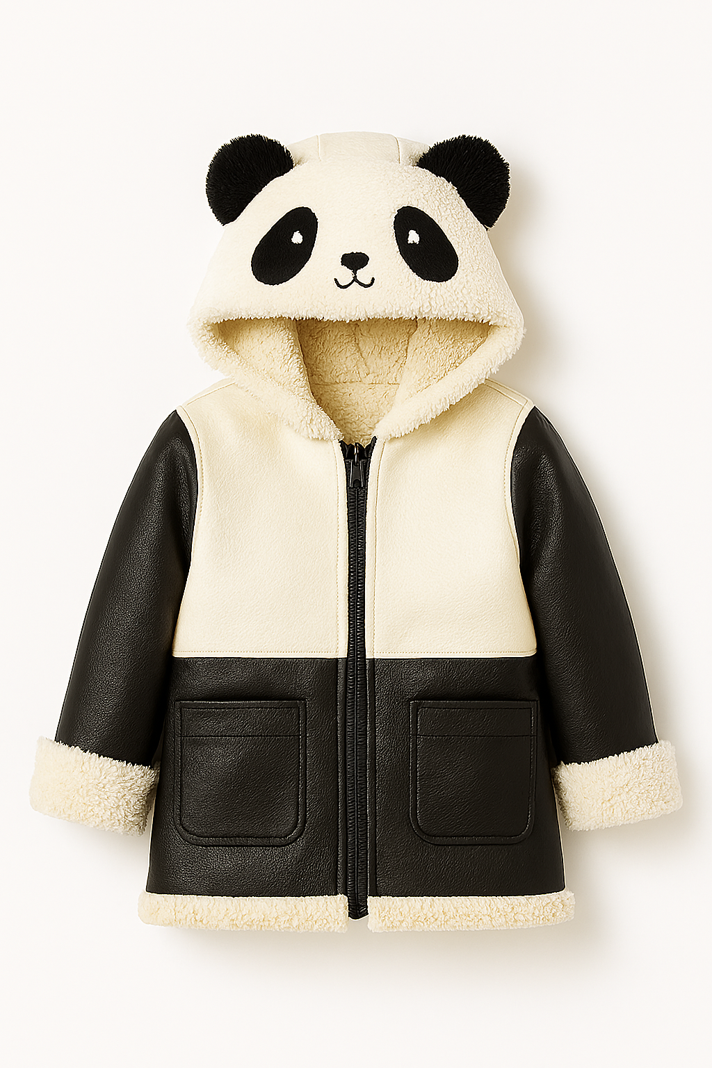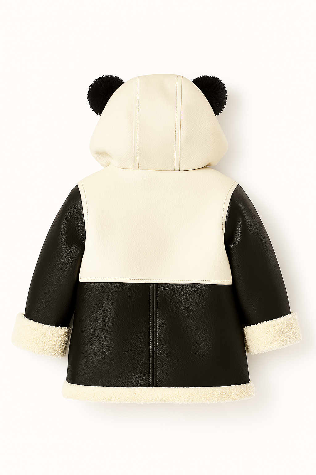 Real Leather Panda Hoodie Jacket – Black & Cream